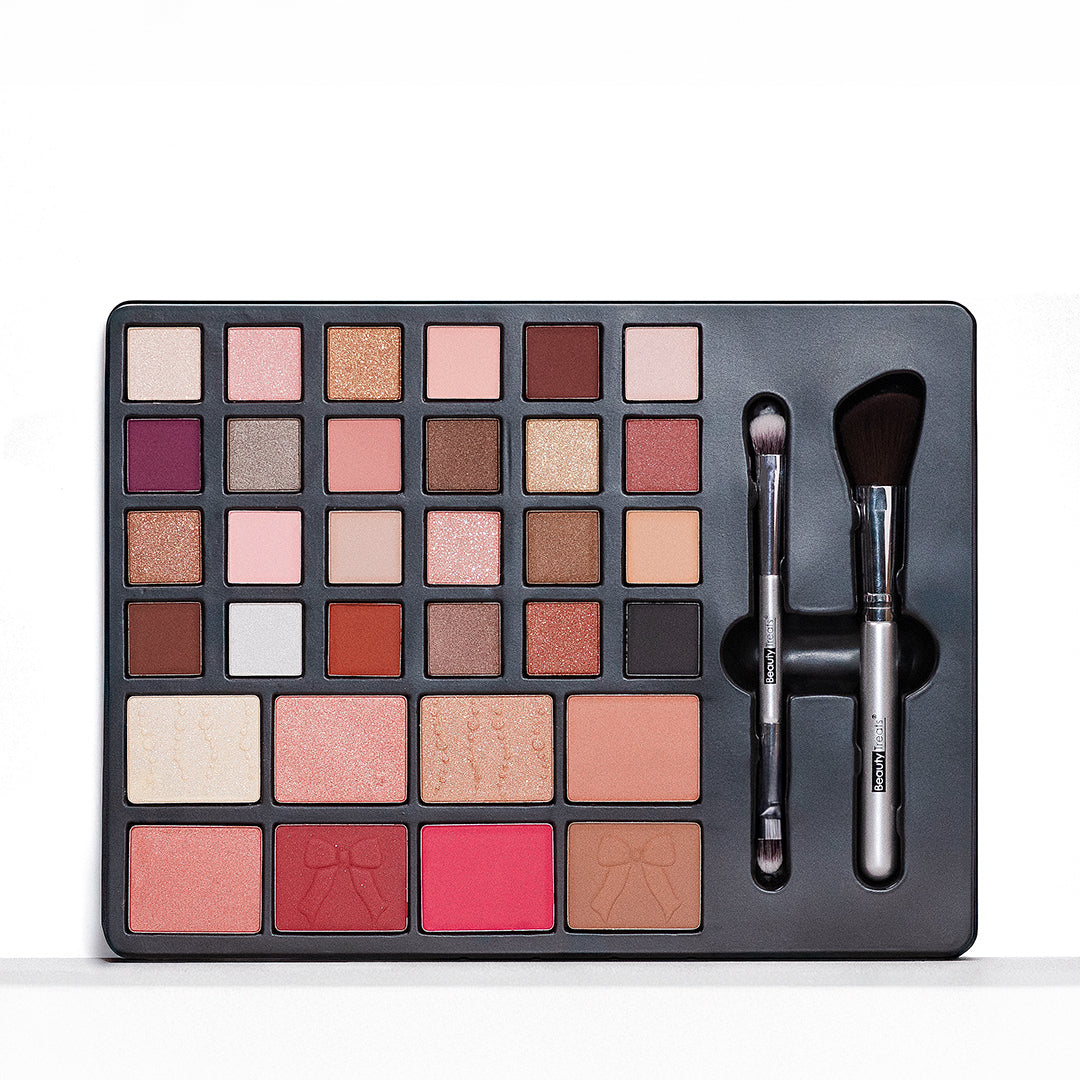 Descubre el secreto de un maquillaje impecable con la Beauty Vault de Beauty Treats. Esta paleta todo-en-uno incluye 24 sombras de ojos con acabados mate, shimmer y satinados, 8 productos para rostro (rubores, iluminadores y contornos) y 2 brochas para una aplicación precisa. Perfecta para lograr desde looks naturales hasta los más sofisticados, su fórmula altamente pigmentada y fácil de difuminar garantiza un acabado profesional en cada uso.