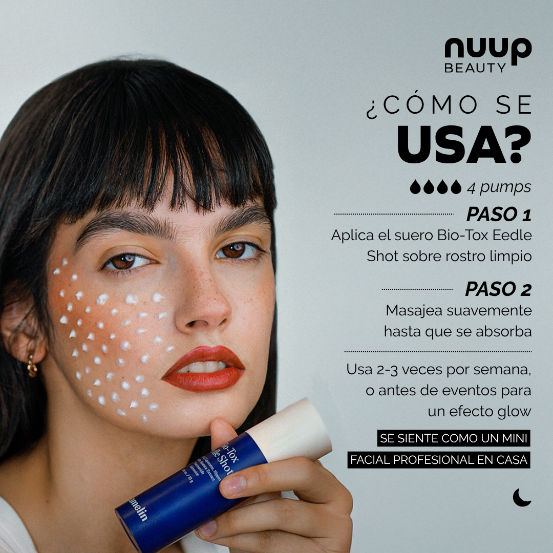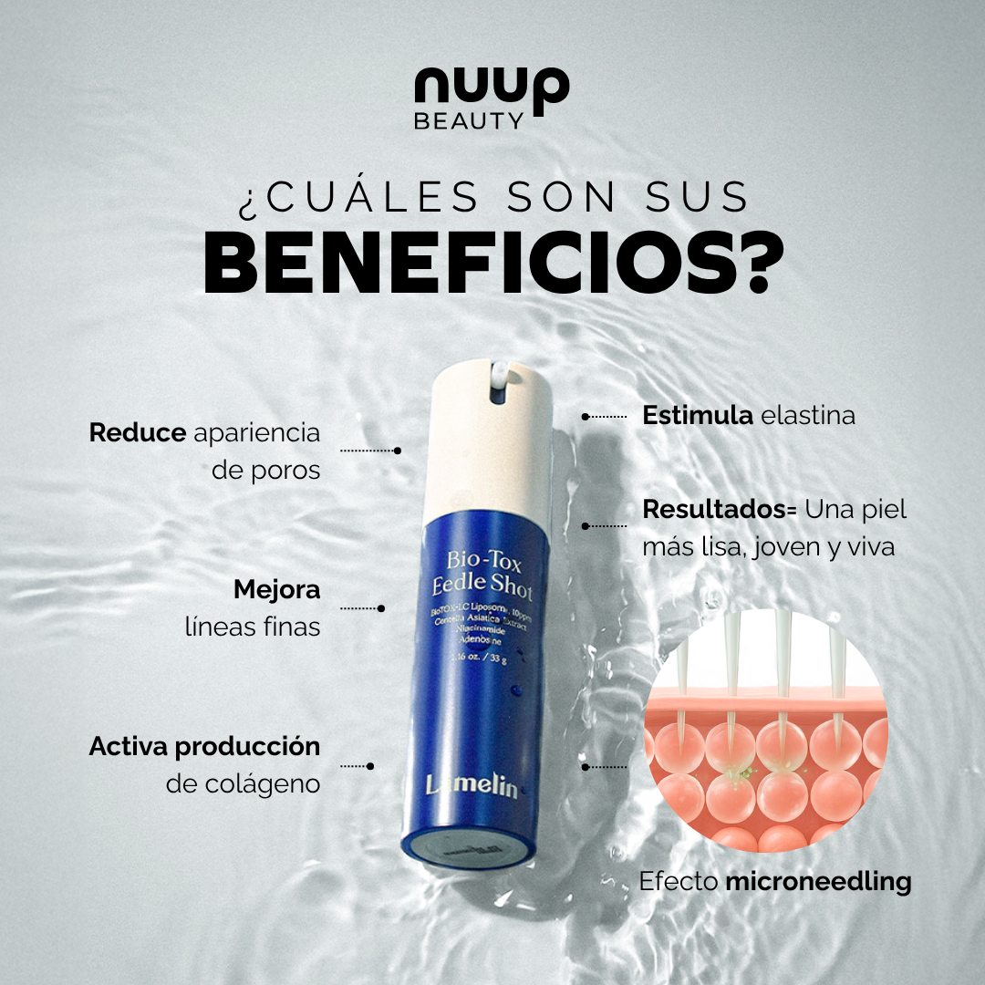 Este producto es un tratamiento intensivo diseñado para combatir los signos de envejecimiento y mejorar la apariencia de la piel. Su fórmula innovadora incluye ingredientes como péptidos, extractos botánicos y factores de crecimiento que ayudan a revitalizar y regenerar la piel. El Bio-Tox Eedle Shot está formulado para proporcionar un efecto lifting, suavizando las arrugas y mejorando la elasticidad de la piel.
